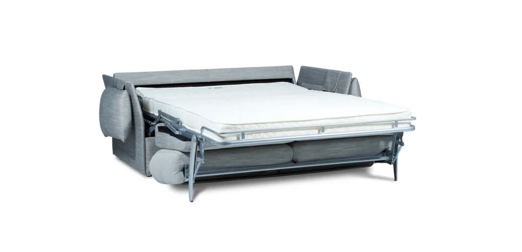 Facile à ouvrir et pratique, il affiche un design compact de seulement 184 cm de large pour un couchage de 140 cm, idéal pour optimiser l’espace sans compromis sur le style.