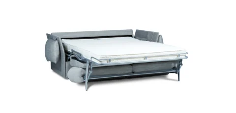 Ce canapé convertible contemporain fabriqué en France, signé Christophe Pillet, offre un matelas de 13 cm d’épaisseur pour un couchage quotidien confortable.